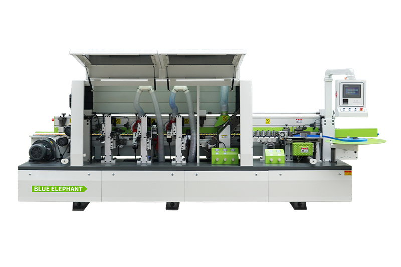 全自動封邊機,操作方便,精度高。具有涂膠、齊頭齊尾、粗修、精修、平刮、拋光等功能;全封閉式安全防護罩,并采用透明亞克力罩,以便及時檢查工作情況;采用高速電機的精修機組,保證精修質(zhì)量;
