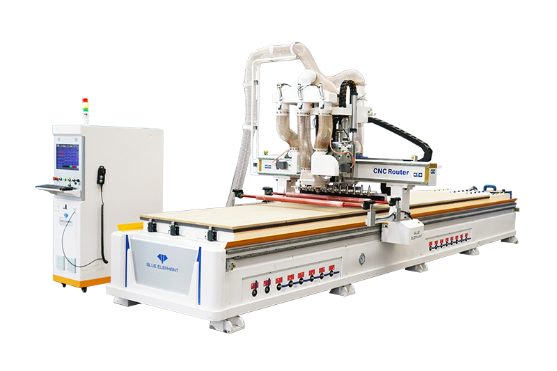 機(jī)器采用12把直排自動換刀,9kw風(fēng)冷主軸搭配5.5kw鋸片主軸,加工精度高,加工板材光滑整潔無毛刺。