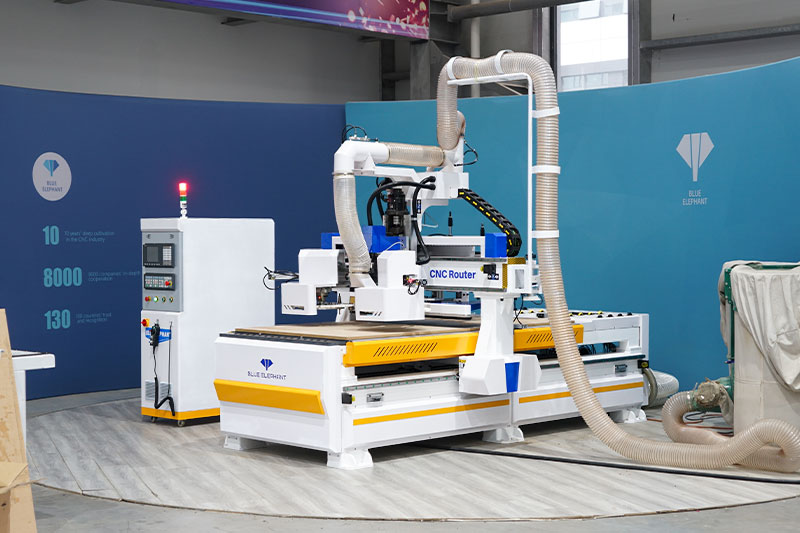 絲杠數(shù)控開料機采用雙圓盤式換刀刀庫 ,可完成復雜工序加工,節(jié)省換刀時間。