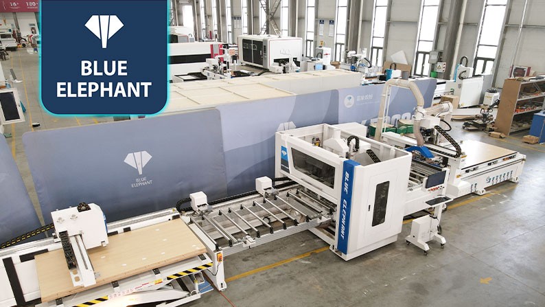 2. 采用鉆切一體、封邊側孔一體的技術路線,解決了因開料、打孔、封邊等多個工序引起板材的多次搬運,導致板材磕碰的問題,實現(xiàn)兩道工序即可完成整套板式家具的貼標-打孔-開料-封邊-側孔等工序,避免因板材磕碰導致的材料浪費,提升板式家具定制工廠產(chǎn)品的整體合格率。