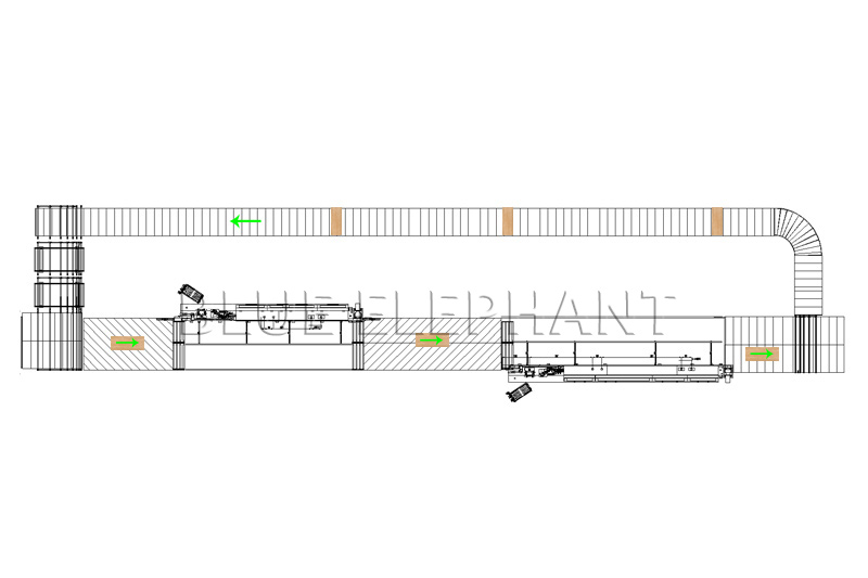 板料由動(dòng)力滾筒輸送至封邊機(jī)---由第一臺(tái)封邊機(jī)完成第一條邊封邊---第二臺(tái)封邊機(jī)完成第三條邊封邊---板材回轉(zhuǎn)再次完成第2、4條邊封邊---完成封邊的板材進(jìn)入緩存?zhèn)},一次排隊(duì)輸入打孔鉆單元。