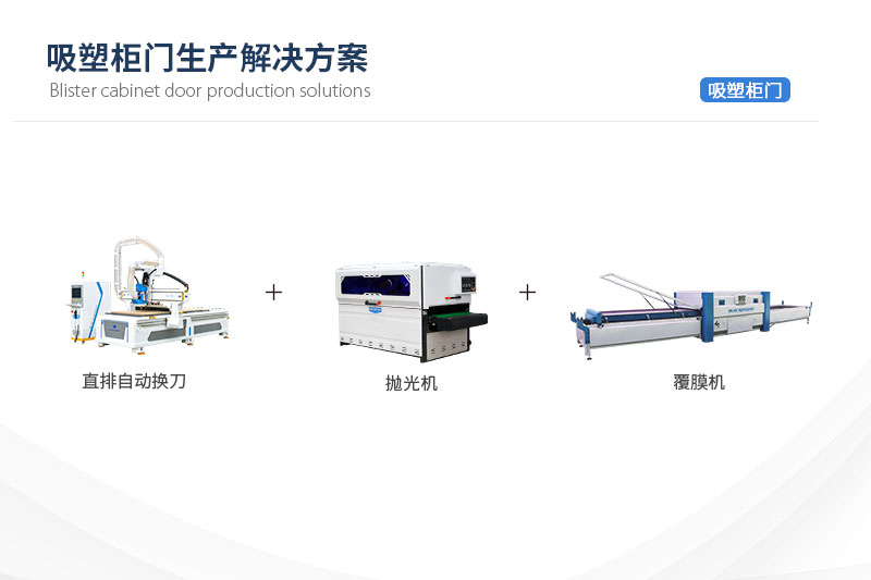 吸塑門/柜門生產線主要由自動換刀加工中心、拋光機、覆膜機、單頭鉸鏈鉆四種設備組成,可用于各種木門、吸塑門、柜門的生產加工。