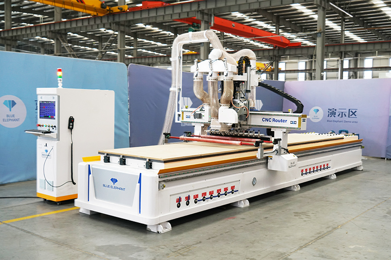 機(jī)器采用12把直排自動換刀,9kw風(fēng)冷主軸搭配5.5kw鋸片主軸,加工精度高,加工板材光滑整潔無毛刺。