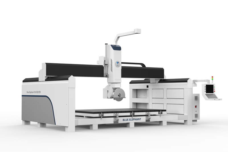 1、五軸橋式鋸片可傾斜45°,切割標準尺寸板材,實現(xiàn)四邊倒角、平面開槽、挖盆孔等功能。