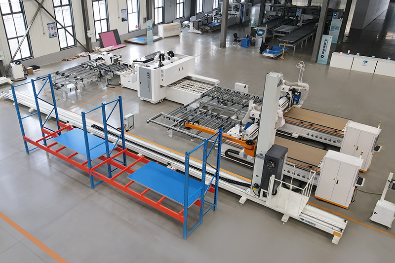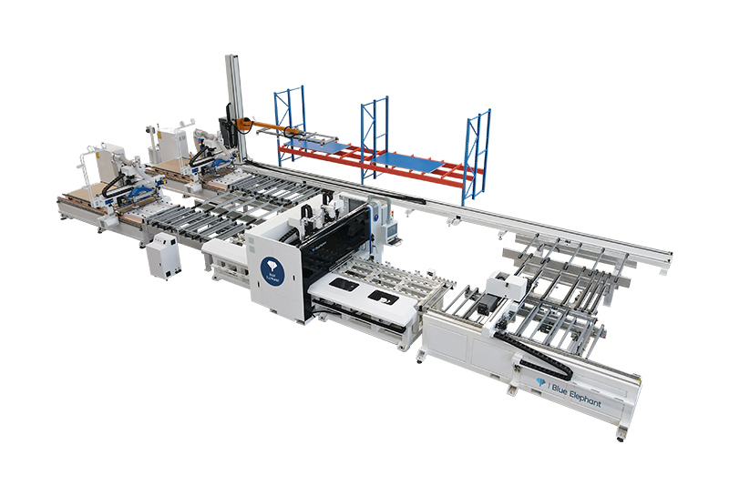 一拖二貼標(biāo)鉆切生產(chǎn)線增加智能料倉,實(shí)現(xiàn)自動(dòng)抓料、智能配板、柔性生產(chǎn)。