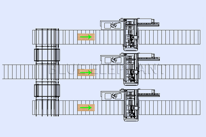 封邊完成的板材被送入至六面鉆---完成全部打孔后采用“前進(jìn)前出”或“前進(jìn)后出” 板料輸出方式---進(jìn)入緩存?zhèn)},進(jìn)行后續(xù)分揀打包